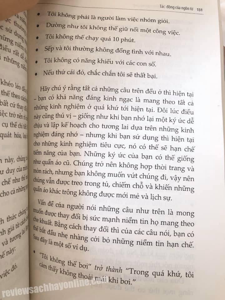 Cuốn sách này thì thuộc dạng dễ đọc với kết cấu rõ ràng: đi từ suy ngẫm ban đầu, những giá trị và môi trường xung quanh bạn đến hướng dẫn cách tư duy, các biện pháp với những ví dụ rất cụ thể và dễ hiểu, sau đó là phần kết quả và giới thiệu một cách tóm tắt thêm những phương pháp NLP bổ sung.